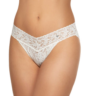 The Hanky Panky Crystal Heart V-kini (482SWHRT) features a v cut, low rise waist line and moderate brief rear coverage.