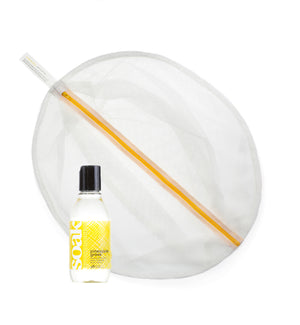 Delicates have a safe home when you wash now! Soak Eco Wash Bag and Travel Soak Set (Slim Bag and 3 ounce Wash) is a garment bag that is washer and dryer safe. To use, simply place your delicate items inside the laundering bag. Zip it closed and secure it under the protection tab that keeps it from getting hooked on anything else in the wash. Add your favorite Soak Wash, included with this set, into cool water on the delicate cycle. Lay knits and lingerie flat to dry. Soak Eco Wash Bags are made from 100% RPET, post-consumer recycled plastic bottles, so each Eco Wash Bag diverts 8+ plastic bottles from oceans and landfills. This slim size bag is great for travel and for laundering of your special care items like swimwear, scarves, baby socks, knitwear, or a few lingerie items.