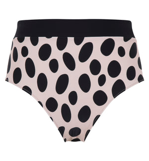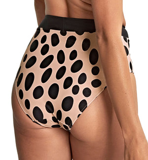 Panache Amalfi High Waist Full Swim Brief (SW1775) is a high-rise swim bottom with full front and rear coverage for a flattering and covered fit that stays in place. This full bikini bottom is a luxurious deep taupe color with large black polka dots, trimmed with a bold black band along the waistband. Pair with Panache Amalfi Kara Nonwire Triangle Bikini Top (SW1764), sold separately, OR your favorite black bikini or tankini top, for a gorgeous twist on your classic Audrey Hepburn polka dot beach-babe look.