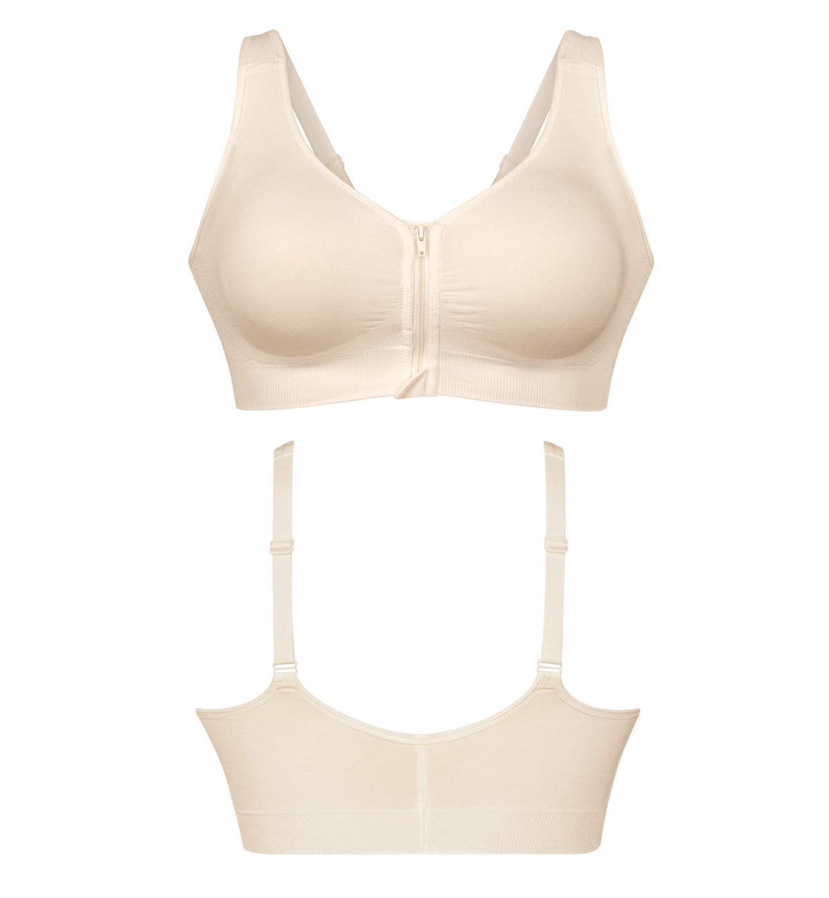Sporty look, uncomplicated comfort: The Anita Care Lynn Pocketed Post Surgery Bustier (5768X) is a seamless mastectomy crop top that opens at the front with a full-length zipper, making it easy to put on or take off while recovering from surgery. The removable molded pads in the double-layer cups conceal as well as providing a naturally rounded, supported silhouette. Comfortably wide, soft adjustable shoulder straps round off the ''second skin'' comfort.