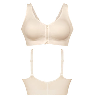 Supremely soft, deeply comfortable, this post-op bra is perfect for early recovery when your skin is sensitive and you need something easy to put on or take off as needed. This is comfortable enough to sleep in, has pockets for breast forms, and provides enough support for everyday wear. If you're between sizes, consider ordering a size down for a firmer fit under the bustline.