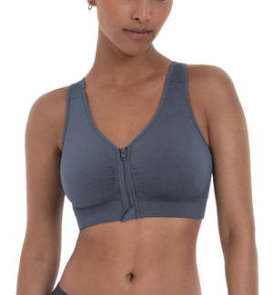 Supremely soft, deeply comfortable, this post-op bra is perfect for early recovery when your skin is sensitive and you need something easy to put on or take off as needed. This is comfortable enough to sleep in, has pockets for breast forms, and provides enough support for everyday wear. If you're between sizes, consider ordering a size down for a firmer fit under the bustline.