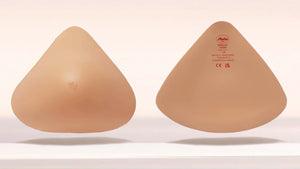 The Anita Care Softtouch Silicone Breast Form 1052X2 is made of 100% whipped silicone for a realistic texture. Designed to mimic the shape of a natural breast, this breast form is light and comfortable for all day wear. The form backing fits comfortably against the body with a symmetrical shallow fit. Contains one form; image shows front and back views.