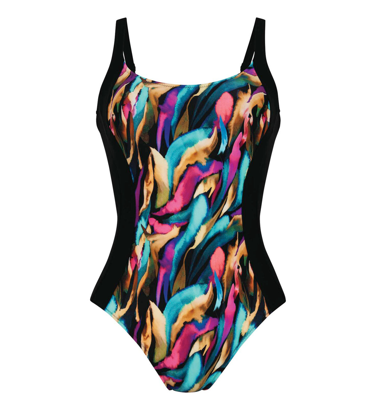 The Anita Disco Fever Mette One-Piece Swimsuit (7264) is such a figure flattering swim suit designed for a self-confident, modern woman. This sporty one-piece is tailored for a slimming effect through the mid-section. Flattering color blocked sections help to create an hourglass look. Wire-free cups, adjustable straps and scooped neckline ensure a comfortable and flattering fit. Check out the Anita Floral Illusion Elea One-Piece Swimsuit (7339) for another one-piece swim option from Anita, sold separately.