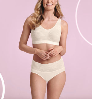 The Anita Essential Lace High Waist Brief Panty (1304) fits like a dream, but still has the luxurious look and feel of lace. This high waisted underwear is made of a super soft comfort lace that is extremely stretchy and flexible. The wide comfortable waistband, full brief rear coverage and lined gusset offer comfort and feminine styling. Pairs perfectly with the Anita Essentials Lace Lightly Padded Bralette (5400), Anita Essential Lace Lightly Padded NURSING Bralette (5057) and Anita Care Essential Lace Post Mastectomy Bralette (4700X) styles from Anita and Anita Care, sold separately.