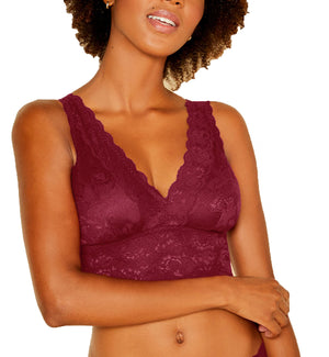 Cosabella Never Say Never CURVY Plungie Longline Bralette (NEVER1385) is a totally wireless leisure bra made of soft, pearlescent, semi-sheer stretch lace that is perfect for lounging or sleeping. Featuring a flex-mesh liner in the entire bra and additional underbust sling to avoid that 'hanging down' appearance, plus back adjustable straps, and a flex lace longline band, you'll have the look of a soft bra but with a better fit for your full figure curves.