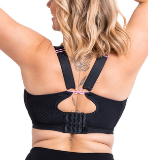 Customers are raving about how comfortable the Curvy Kate Everymore Underwire Sports Bra is! It has an amazing size range going up to a K cup, but it’s not just great for the larger sizes; our smaller busted customers love it too! This sport style features a J-hook clasp that's located near the bottom of the straps for ease of attachment and adjustability. There's a slight amount of padding around the wire and comfort band, both of which add to the overall comfort of the style, but it's not padded enough to make it bulky! The band and cups are made of a mesh material that's fantastic for breathability and wicking sweat away. It also provides a less conical shape when compared to its closest alternative, the Elomi Energise. Both make excellent every-day bras, and many customers use them as that and not as a "sports bra" option. Customers do seem to lean towards this bra, however, for its more natural, rounded shaping. This style works great for women who have breasts that are heavier on the bottom and not as full on the top, but it works very well for fuller breasts as well. It’s a wonderful all-around sports bra, though I honestly wouldn’t recommend it for high-impact sports. I consider it to be more of a medium-impact style.