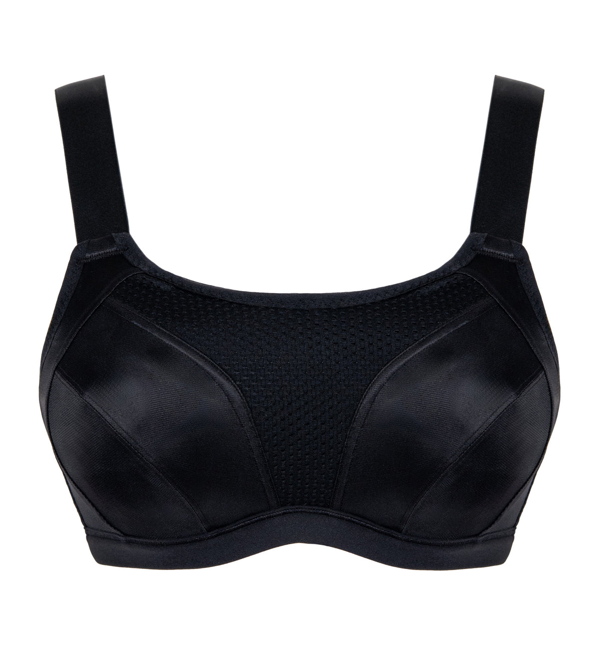 • Powermesh band is wider than traditional sports bras, giving smooth and secure fit with even pressure distribution