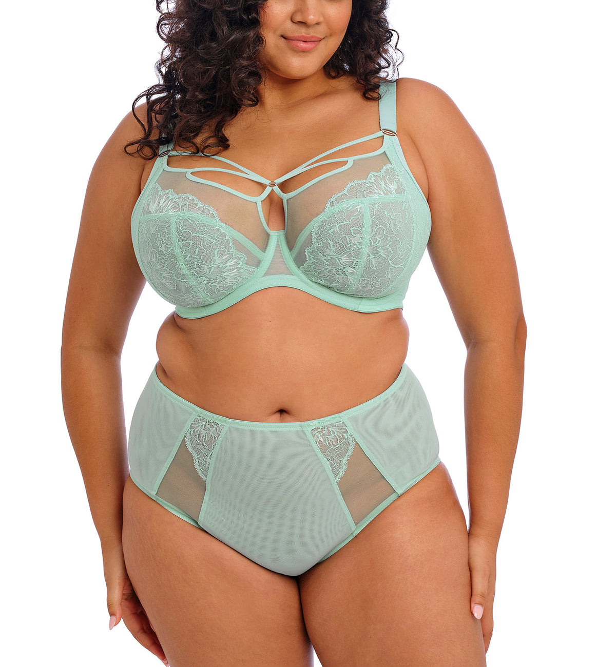 The Elomi Brianna Full Panty Brief (8085) is a mid-rise panty with semi-sheer mesh side panels overlaid with beautifully feminine scalloped floral lace. Features full rear coverage and a stretch mesh fabric that is smooth, soft, and comfortable for everyday wear. Pairs perfectly with the Elomi Brianna Plunge Underwire Bra (8080) or Elomi Brianna Padded Half Cup Underwire Bra (8081), each sold separately.
