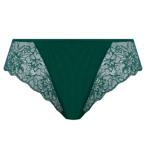 Elomi Brianna Thong (8087) is a gorgeous everyday low rise thong that features flirty stretch lace panels at the front and back waist with a double layer stretch mesh front that is modest but light. Pair with Elomi Brianna Padded Half Cup Underwire Bra (8081), sold separately, for a coquettish set that has you feeling like a knock-out from work day to date night.