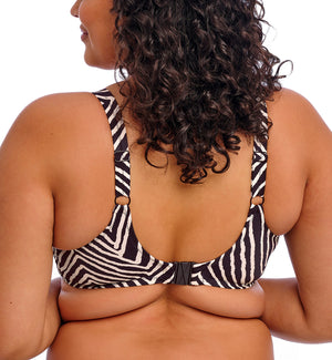 The Elomi Fiji Falls Underwire Plunge Bikini Top (ES802602) dives straight into swim season with it's zebra-esque, wave-inspired print in flattering colors that are sure to flatter any skin tone. This versatile underwire swim top is fully lined with a light but supportive fabric for a swimwear look with the support of an Elomi bra. The cups, straps and back are cut from a lightweight fabric, designed to resist damage caused by sun, heat, chlorine and lotions. Adjustable shoulder straps offer a custom fit. Check out the matching swim bottom Elomi Fiji Falls Mid Rise Bikini Brief (ES802672) for a matching set, sold separately.