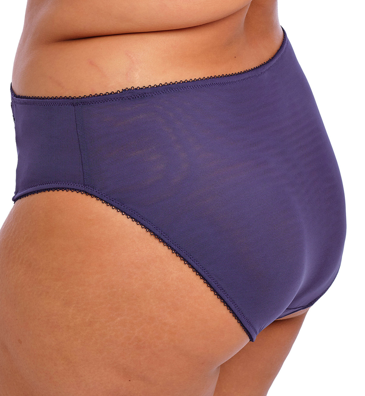 Elomi Himari High Leg Brief Panty (302153) features sheer accent panels with delicate and lustrous floral embroidery. This high rise panty has double-layer stretch mesh that is lightweight but still provides modesty. Pair this flattering high leg panty with Elomi Himari Plunge Underwire Bra (302102), sold separately, for a luminous and feminine lingerie set.