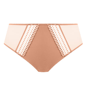 The Elomi Matilda Full Brief (8906) is designed to perfectly match and complement the Elomi Matilda UW Plunge Bra (8900), allowing customers to coordinate and maximize their daily style and comfort. The Elomi Matilda Full Brief (8906) is a fuller coverage brief with a sheer back, comfortable for daily wear. Sheer inserts along the front with embroidery detail provide a hint of subtle style, while the front is lined with cotton jersey for modesty. The Matilda collection comes in a variety of colors, from basic neutrals to new colorways that allow for a touch of sparkle, and many of our customers return again and again to buy up the popular Elomi Matilda collection.