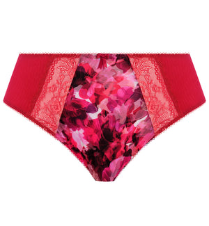 Elomi Morgan High Leg Brief Panty (4118) features high waist coverage with a printed opaque front panel trimmed with lace insert at the hips. This full coverage panty offers moderate rear coverage with semi-sheer and lightweight mesh trimmed along the rear legs with gorgeous stretch lace. The high leg openings create a smoother look under clothing and a sexier elongated leg look. Pair with Elomi Morgan Stretch Lace Banded Underwire Bra (4110), sold separately, for a functional AND fun lingerie set that promotes comfort and confidence.