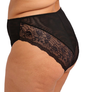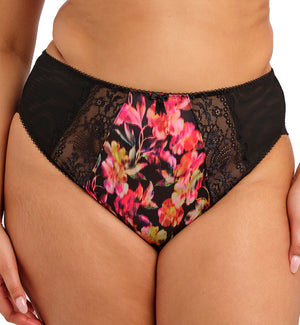 Elomi Morgan High Leg Brief Panty (4118) features high waist coverage with a printed opaque front panel trimmed with lace insert at the hips. This full coverage panty offers moderate rear coverage with semi-sheer and lightweight mesh trimmed along the rear legs with gorgeous stretch lace. The high leg openings create a smoother look under clothing and a sexier elongated leg look. Pair with Elomi Morgan Stretch Lace Banded Underwire Bra (4110), sold separately, for a functional AND fun lingerie set that promotes comfort and confidence.