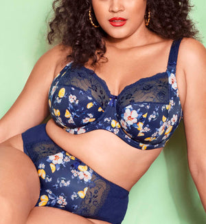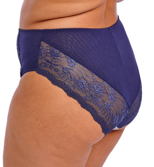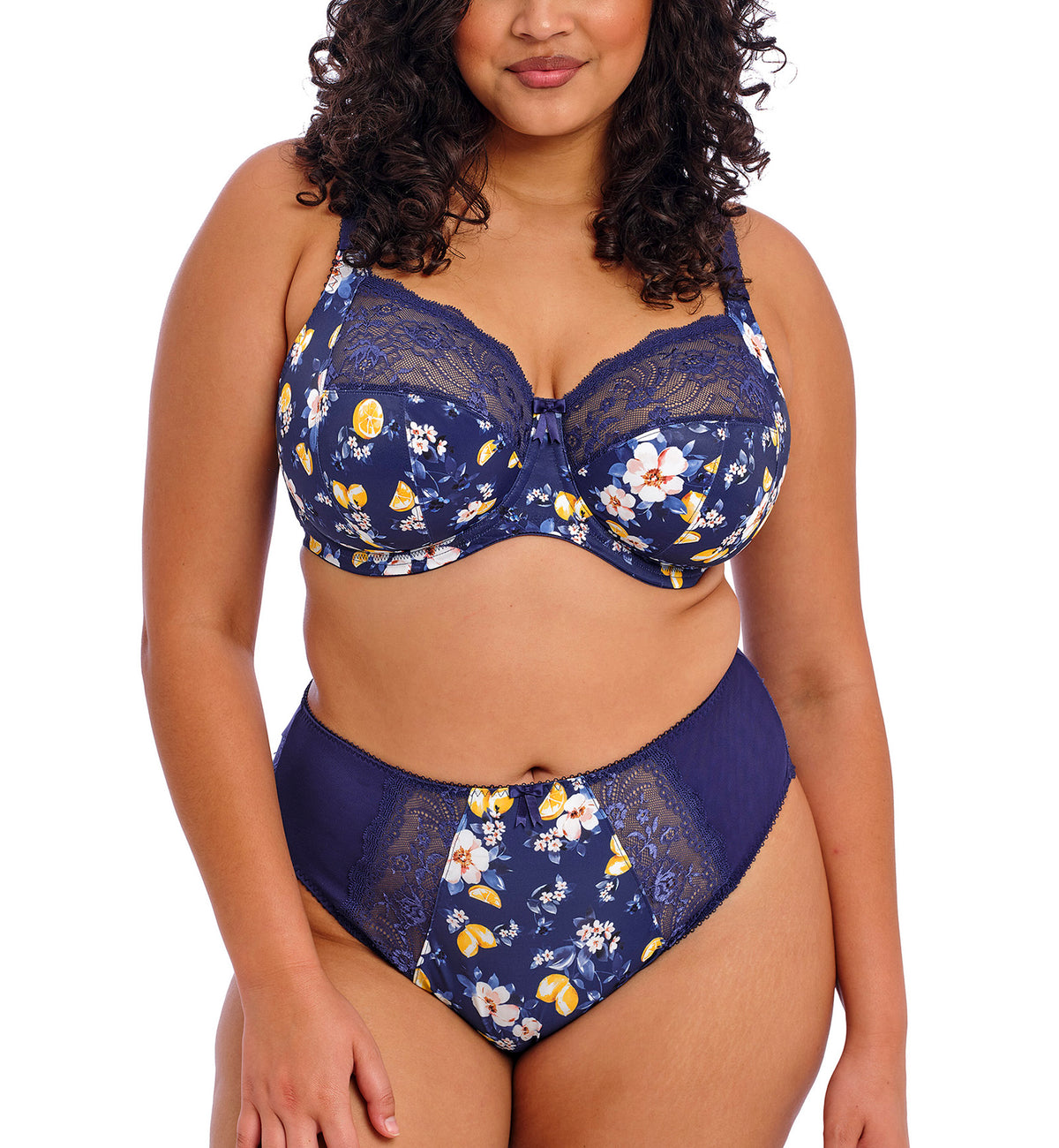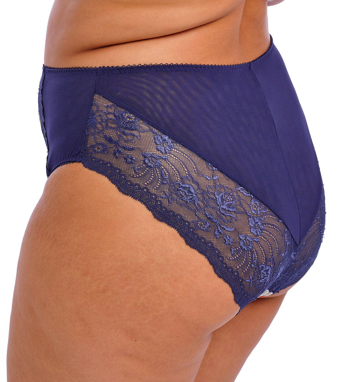 Elomi Morgan High Leg Brief Panty (4118) features high waist coverage with a printed opaque front panel trimmed with lace insert at the hips. This full coverage panty offers moderate rear coverage with semi-sheer and lightweight mesh trimmed along the rear legs with gorgeous stretch lace. The high leg openings create a smoother look under clothing and a sexier elongated leg look. Pair with Elomi Morgan Stretch Lace Banded Underwire Bra (4110), sold separately, for a functional AND fun lingerie set that promotes comfort and confidence.