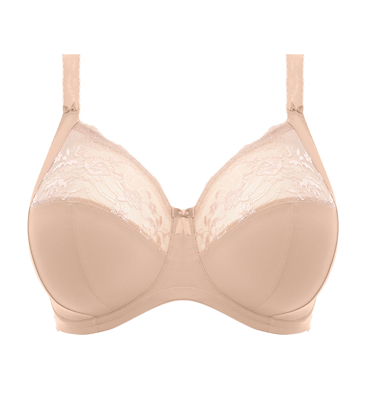 The Breakout Bras crew actually had a hand in designing the Morgan, and it has been an employee AND customer favorite! We suggested something with nice, round shaping, good stretch lace, and Elomi comfort. The stretch lace in the top cup is similar to the Jasmine, the Envy, and the Clara by Panache, providing a good hug for nice, round contour, and the material is so soft you barely feel it! Morgan is hands down one of the most popular styles among our in-store customers. They love the flexible stretch lace that accommodates both full and shallow breasts, and they find the overall fit to be very comfortable. Morgan pulls in from the sides to create lovely, rounded shaping. This style is containing, but has more of a square-shaped fit, rather than a triangular full cup like older Elomi and Goddess styles. This new take on the bra offers more neutral tone options to make Morgan even more versatile and perfect for everyday wear.