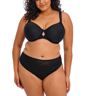 The Elomi Nerina Bandless Spacer Seamless Underwire Bra (302710) is based on the best selling Elomi Charley EL4383 but with an updated design. The cup is a seamless, full-coverage bra with contoured cups made of light spacer foam padding for rounded shaping. Lace panels at the outer cups add feminine detailing, along with the keyhole detail at the center front. Fully adjustable straps have restricted stretch to minimize shoulder slippage. The tall chimney back offers hook and eye closure for a custom fit and feel. Check out the matching underwear Elomi Nerina Matching High Leg Brief (302753), sold separately.