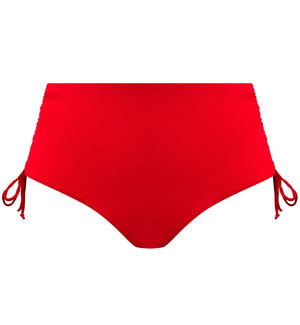 Elomi Plain Sailing Adjustable Side Swim Brief (ES7287) is a flattering and versatile Lava bikini bottom with a mid-rise waist. This swim bottom sits just below the navel on most and has ruched sides with adjustable ties. Tighten them to create a higher-cut leg opening, or leave them loose for lower leg openings and greater coverage. Features full rear coverage.
