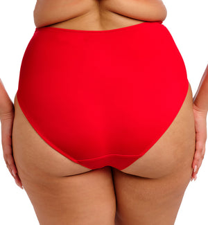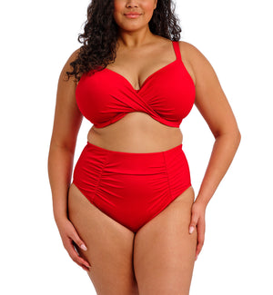 The Elomi Plain Sailing Gathered Full Bikini Brief (ES7286) features a high rise waist and full rear coverage.The front features flattering ruched styling that hugs the body and conceals any imperfections. This brief is fully lined for modesty. Check out the Elomi Plain Sailing Bardot Ruffle Underwire Plunge Bikini Top (ES7282) for a matching swim set, sold separately.
