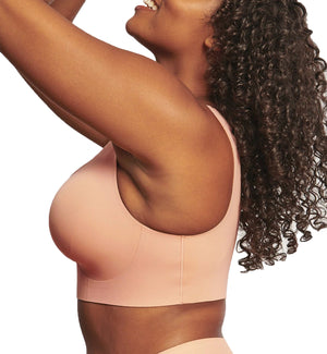 Evelyn & Bobbie EVELYN Deep V-Neck Bralette (1834) is the best of the BEYOND and DEFY bras in one style. A feminine scalloped edge and deep v-neckline will flatter your figure. It has an ergonomic design that minimizes back pain and provides wire-free support. The smoothing fabric helps this seamless bra disappear under clothing. With a patented 360 sling inside the cups, it creates an uplifted silhouette and rounded shaping without the discomfort of an underwire. Feel good in your bra AND feel good about your bra- Evelyn & Bobbie dedicates their brand to a "do no harm" ethos, so your bras are always BPA-Free, Latex-Free, Copper-Free, Nickel-Free, Wire-Free, and Non-Toxic.