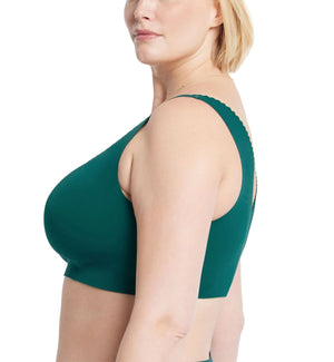 Evelyn & Bobbie EVELYN Deep V-Neck Bralette (1834) is the best of the BEYOND and DEFY bras in one style. A feminine scalloped edge and deep v-neckline will flatter your figure. It has an ergonomic design that minimizes back pain and provides wire-free support. The smoothing fabric helps this seamless bra disappear under clothing. With a patented 360 sling inside the cups, it creates an uplifted silhouette and rounded shaping without the discomfort of an underwire. Feel good in your bra AND feel good about your bra- Evelyn & Bobbie dedicates their brand to a "do no harm" ethos, so your bras are always BPA-Free, Latex-Free, Copper-Free, Nickel-Free, Wire-Free, and Non-Toxic.