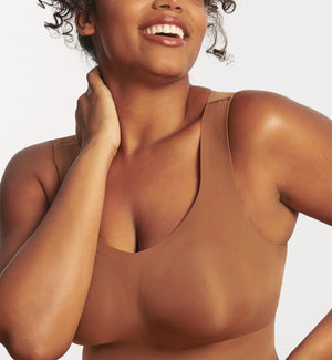 The Evelyn & Bobbie DEFY Bra Tank (1829A), formerly known as the "Smoothing Bra Cami" redefines everyday elegance and comfort. This cami provides a smoothing, buttery soft fabric to make this base layer disappear under clothing. Customize your level of modesty with removable pads. The ergonomic design mimics your anatomy, reducing pain and discomfort compared to underwire bras. The wide non-adjustable straps prevent digging in. Extending to the hips for a smooth transition, this tank is seamless and machine washable. Pairs perfectly with the Evelyn & Bobbie panty styles in the same great fabric, sold separately.