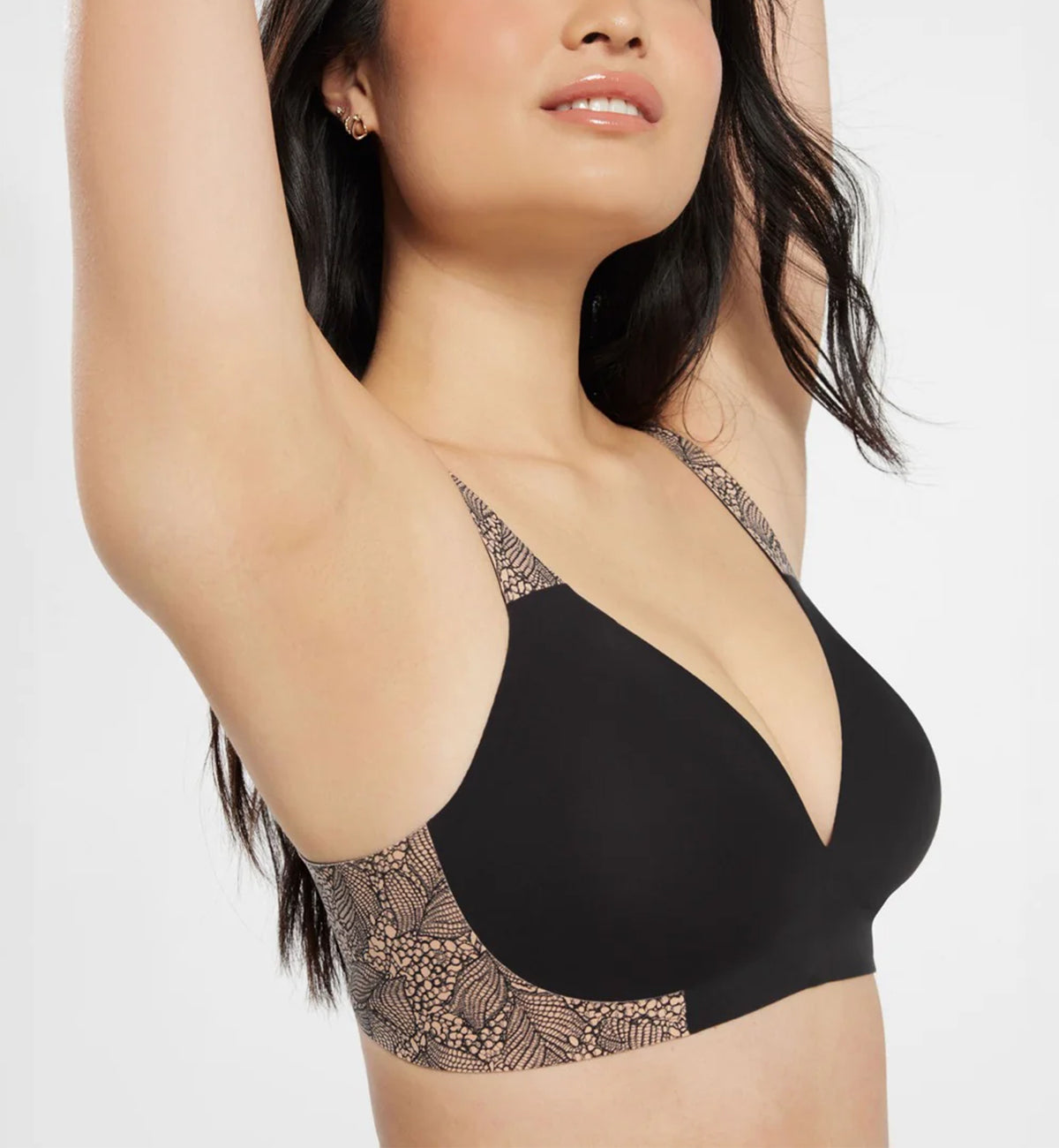 The Starlette bra by Evelyn & Bobbie is the perfect solution for those who want a supportive wireless bra that is lower-cut. I have this bra in every color because it's one of my absolute favorites! It's so comfortable and supportive that you can wear it as your everyday bra. The Starlette will accommodate up to a US K (UK H) cup. However, if you are outside of that cup size range, I would recommend the Parfait Daisy or Mia wireless bras instead.