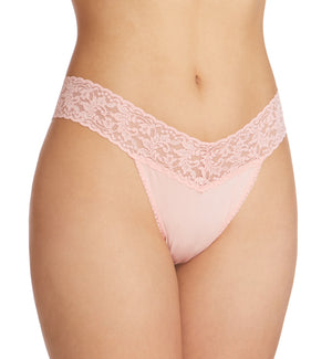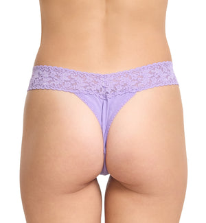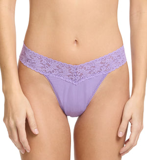 Hanky Panky 3-PACK Cotton Original-rise Thong (89183PK) is a 3-pack of cotton thongs with moderate waist coverage, crafted with a waistband made with Hanky Panky's signature stretch lace for a comfortable fit. The front panel is made from breathably soft cotton, making this thong perfect for everyday wear. Comes with 3 Original Rise Thongs per pack.