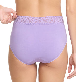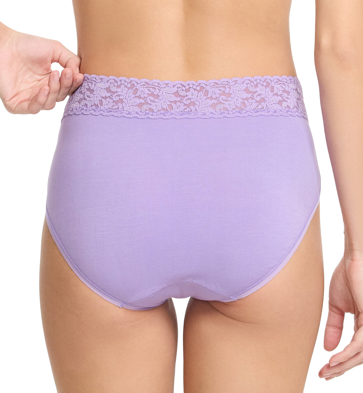 The Hanky Panky Organic Cotton French Brief With Lace (892461) is a classic, high-cut panty with full back coverage and a flattering high-cut leg, in organic, USA-grown Supima cotton-spandex. Features Hanky Panky's signature stretch lace at the waistband.