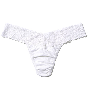 The Hanky Panky Cotton Low-rise Thong (891581P) sits low on the hips and has a waistband crafted from Hanky Panky's signature stretch lace for a comfortable fit. The front panel is made from breathably soft cotton, making this thong perfect for everyday wear. Features no rear coverage.