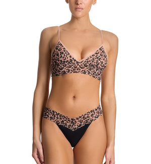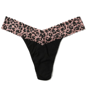 The Hanky Panky Original Rise Thong, now in cotton-spandex blend, features a flattering V-front and V-back design. The flexible lace stays in place without digging in, making this panty a sexy and comfortable thong for daily wear. With a printed waistband and solid body, this stretchy thong adds a comfortable, cute new look to your at-home wardrobe.
