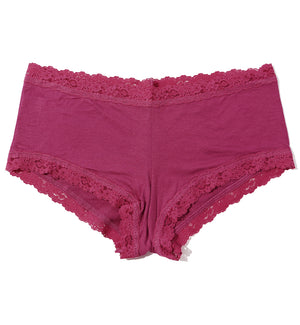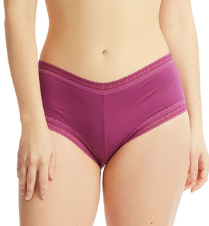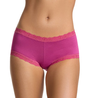 Supremely soft, supremely comfortable - this boyshort is absolutely exceptional. It has a higher waistband than a lot of boyshort-style panties, so it won't cut or dig in at the hips. Fits true to size, but the lace waistband has some give to keep the fit comfortably firm.
