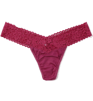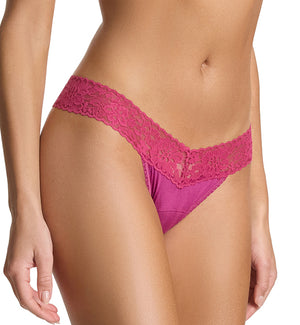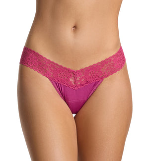 Hanky Panky's low rise thongs are soft and comfortable, and sit at or below the hips, depending on where you prefer to wear them. The stretch lace is broad, so it flexes evenly on the hips and hugs without cutting in. Be sure to check the size chart to ensure a proper fit!