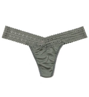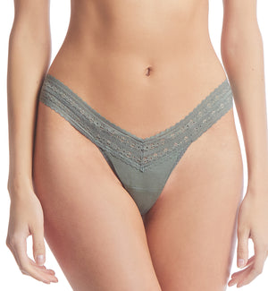 Hanky Panky's low rise thongs are soft and comfortable, and sit at or below the hips, depending on where you prefer to wear them. The stretch lace is broad, so it flexes evenly on the hips and hugs without cutting in. Be sure to check the size chart to ensure a proper fit!