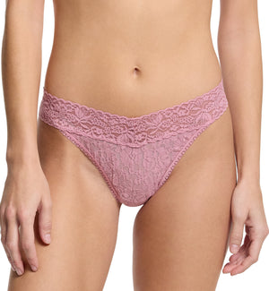 The Hanky Panky Flora Lace Original Rise Thong (5B1102P) sits high on the hips and is made of the same soft and flexible lace as Hanky Panky's Signature collection, but with a flourishing blooming designs in the lace. This high rise thong features the flattering v-front and v-back design Hanky Panky is known for, as well as that NO VPL fit you expect! Check out the lower rise version Hanky Panky Flora Lace Low Rise Thong (5B1002P), sold separately.