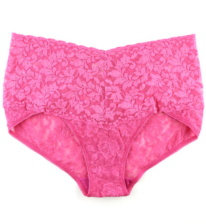 The Hanky Panky Retro Lace V-kini (9K2124) is crafted with the softest fabrics and trims available for a comfortable fit. Perfect for those with a little extra tummy, this V-kini is designed to hug your midsection with an extra-generous band of Hanky Panky's signature stretch lace. For a patterned version of this panty, check out the Hanky Panky Retro Lace Printed V-kini (PR9K2124).