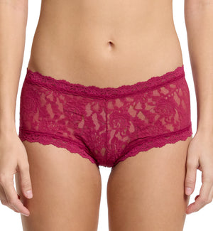 The Hanky Panky Women's Signature Lace Boyshort (4812) is made from hanky panky's famous signature lace designed with comfort in mind. This stylish short offers all-over sexy sheer coverage in a stretch lace. The waist is mid-rise, sitting below the navel on most. Full rear coverage, low cut leg openings and a cotton lined gusset make this comfy short perfect for all day wear. Check out the Hanky Panky Women's Printed Signature Lace Boyshort (PR4812P) for the same great signature lace boyshort but in prints, sold separately.