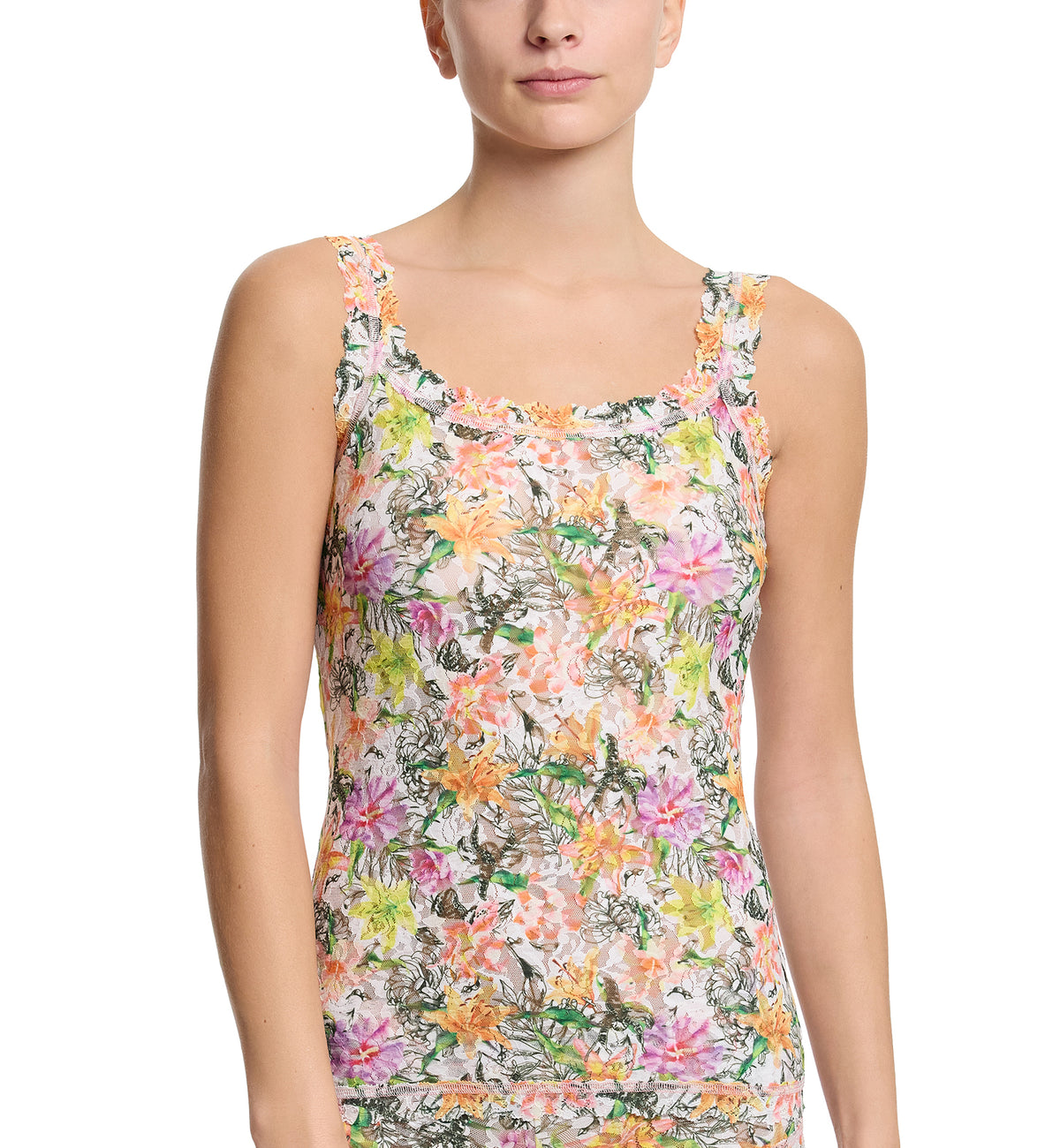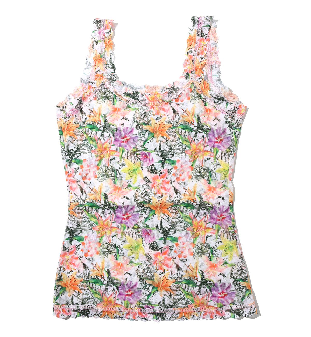 The Hanky Panky Signature Lace Printed Unlined Camisole (PR1390L) is serenely sexy and soft against your skin, this cami is for living in lace night and day. This lace tank features a scoop neck with scalloped lace trim. Hanky Panky uses their signature stretch lace to create a comfortable, unlined cami that will be a great addition to any wardrobe. The bottom hem hugs to your curves making this cami a great layering piece. The wide straps are bra-friendly and non-adjustable. If you need a larger size, check out the plus sized version Hanky Panky Signature Lace Printed Unlined Camisole PLUS (PR1390LX), sold separately.