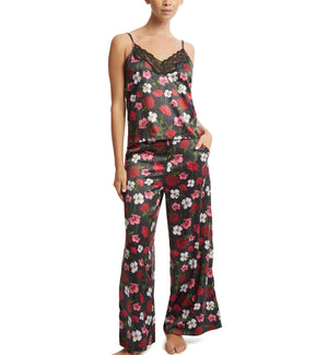 Hanky Panky So Luxe Satin Pant (1SP554) is a stunning and comfy lounge pant, featuring silky stretch satin fabric. This pajama pant has a wide waistband with elastic at the back, which sits just below the navel on most. This lounge pant is flared, for a stylish but comfy fit- and it has POCKETS! Pair with So Luxe Satin Robe and Camisole (sold separately), for your new favorite satin floral loungewear.