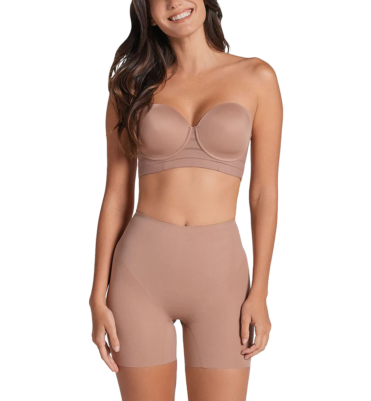 The Leonisa Undetectable Padded Butt Lifter Shaper Short (012889) is an invisible shaper short made with ultra-light DuraFit fabric, so it smooths out curves while still being comfortable enough to wear every day. The moderate targeted compression slims where it counts without cutting in or digging; the tummy, waist, hips, and thighs are targeted for shaping, but the back features rounded shaping and optional rear pads for extra lift and shape a needed.
