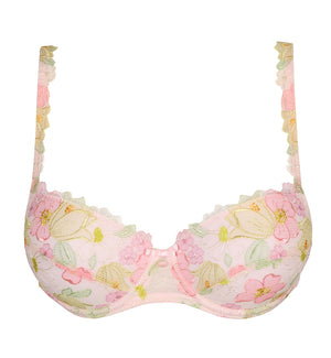 The Marie Jo Ettie Padded Balcony Underwire Bra (0102589) offers delicate pastel florals with a stained-glass feel sure to become a new favorite. This underwire bra is lightly padded, with molded multi-section cups for a lifted, nicely rounded shape. Features pastel florals with an Art Deco feel for vintage glamour paired with modern comfort. Adjustable shoulder straps have scalloped edges for added texture and visual interest. Pairs perfectly with the Marie Jo Ettie Matching Rio Brief (0502580), sold separately, for a matching lingerie look.