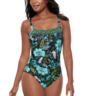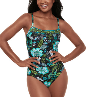The Miraclesuit Florica Kara Underwire One Piece Swimsuit (6566193) is a sleek one piece featuring soft shirring that cinches and defines your waist. A flattering square neckline adds visual interest while the concealed underwire cup adds support. The adjustable straps allow you to customize the fit to you. The bottom provides moderate rear coverage and flattering leg openings that elongate your silhouette.