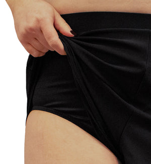 The Miraclesuit Plus Size Swim Shorts (6518805W) will add confident coverage to your swim wardrobe this season with it's relaxed fit and super-soft fabric. This high rise swim bottom sits at the navel and upper thigh on most, making it perfect for pool-to-poolside transitions. This swim short is comfortably loose around your thighs and hips with it's relaxed styling. Full coverage in the rear, built-in swim brief and super-soft fabric make this swim short a must-have addition to your swim wardrobe. Pairs perfectly with the Miraclesuit Illusionists Mirage Plus Size Tankini Top (6518941W) for a great swim set from Miraclesuit, sold separately.