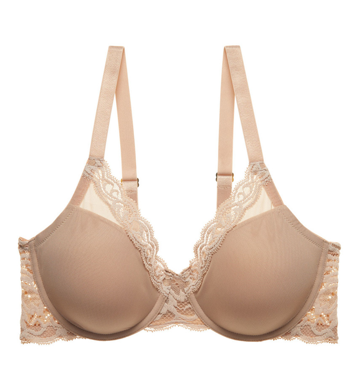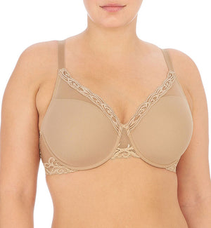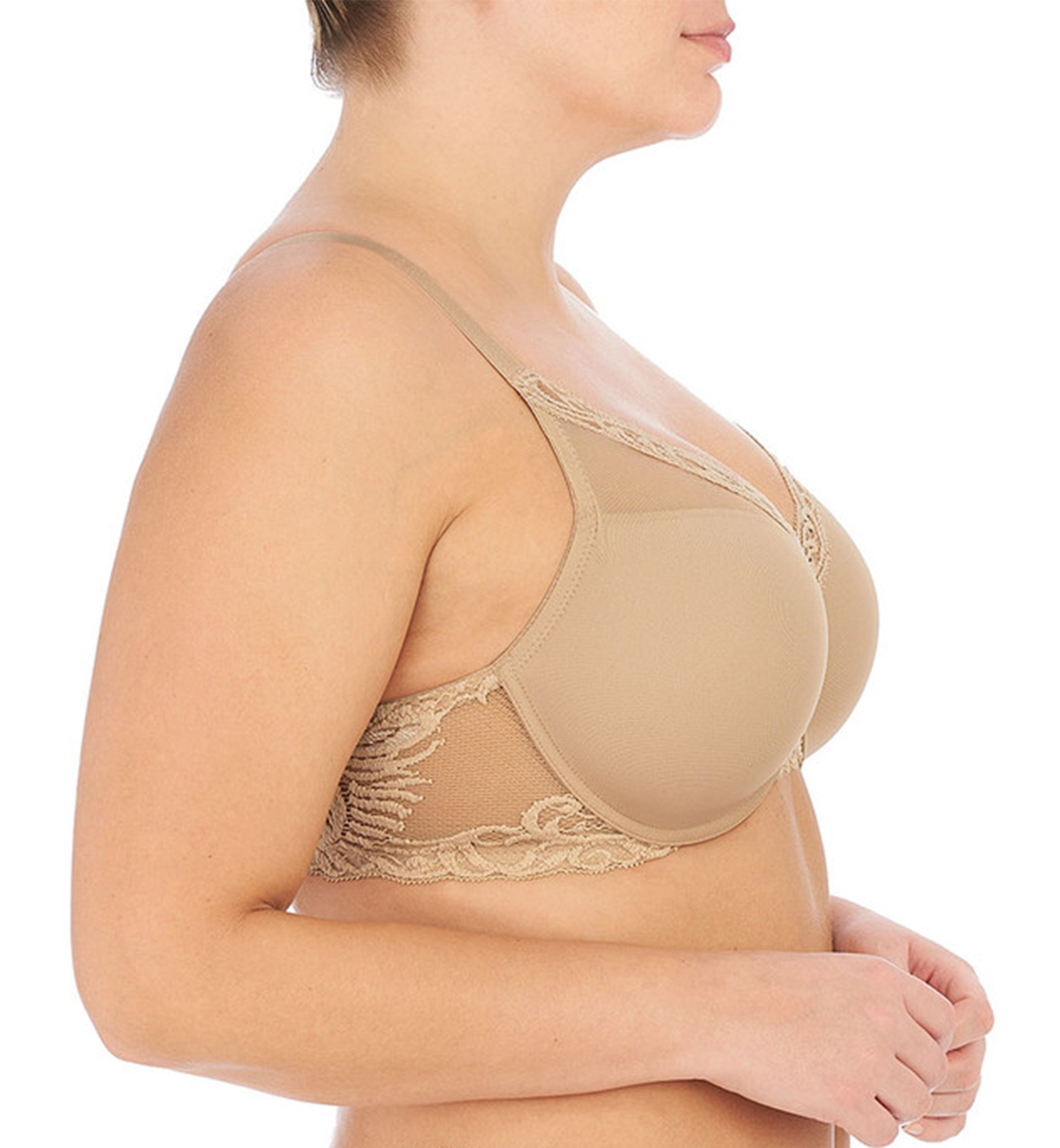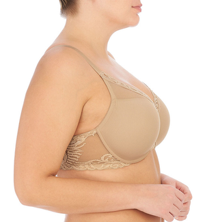 Natori Feathers Full Figure Contour Plunge Underwire Bra (741299) is based on the original Feathers (730023) with a deep plunging neckline, beautiful Italian lace trim along the cups and band, and lightly padded underwire contour cups under stretch mesh that helps shape and control the bust for a no-gap hug at the top. Natori enhanced this best-selling design with enhanced additional coverage and band support for fuller bust sizes. Pair with Natori Bliss Girl Brief Panty (756023), sold separately, for a daily wear lingerie set that goes from day to evening without a wardrobe change.