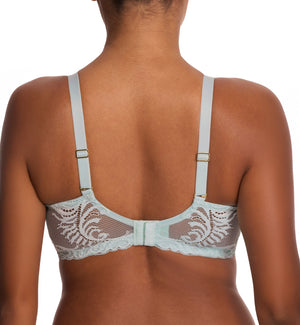 Natori Feathers Full Figure Contour Plunge Underwire Bra (741299) is based on the original Feathers (730023) with a deep plunging neckline, beautiful Italian lace trim along the cups and band, and lightly padded underwire contour cups under stretch mesh that helps shape and control the bust for a no-gap hug at the top. Natori enhanced this best-selling design with enhanced additional coverage and band support for fuller bust sizes. Pair with Natori Bliss Girl Brief Panty (756023), sold separately, for a daily wear lingerie set that goes from day to evening without a wardrobe change.