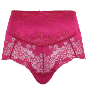 The Panache Clara High Waist Brief (7254) radiates sophistication and elegance with it's soft floral lace and feminine details. This opulent, retro-inspired brief features a intricate floral and micro-dot lace overlay over a smooth satin-like fabric, creating a beautiful two-toned design. The opaque rear offers moderate coverage. This brief pairs beautifully with the matching Panache Clara Full Cup Underwire Bra (7255) and Panache Clara Molded Sweetheart Underwire Bra (7251), sold separately. If you prefer less coverage, check out the Panache Clara Brief (7253) and Panache Clara Thong (7259).