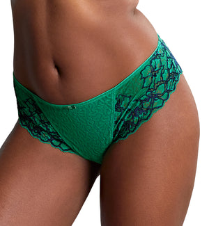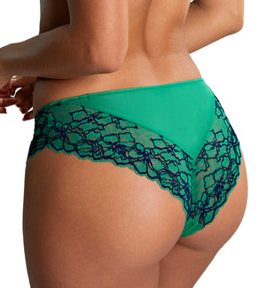 The Panache Envy Brazilian Brief (7281) is purrr-fect for a day at home or dressing up for a night on the town. With it's delicate stretch lace combined with luxurious softness, stay comfortable the entire time in this sexy brazilian brief. This cheeky panty has luxurious leopard jacquard and floral lace across the hips and front panel that coordinates with the Panache Envy Balcony Underwire Bra (7285) purrr-fectly. Available in a variety of stunning colors that flatter different skin tones and add a fresh look to this classic design.