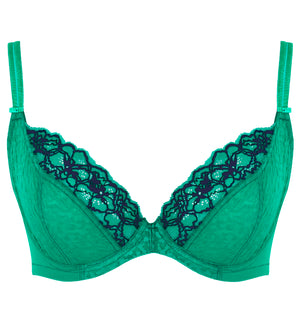 Long-time Panache fans are loving the Envy plunge bra. This bra has the classic firm Panache fit, accommodating up to a UK J (US M) cup size. The sides come up higher to really push the side breast tissue forward and center, resulting in a really nice rounded, plump look. This bra works well for women who have firmer breast tissue. Women with softer tissue typically do better with a taller center wire and should try the Envy Balcony style instead.