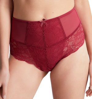 The Panache Imogen High Waist Brief (10165) have a high waist for greater coverage and light control, with a sweetly feminine design that layers sheer floral lace over a solid base fabric. Seaming along the mesh back helps provide light rear shaping with full coverage. Pairs perfectly with the Panache Imogen Balconnet Underwire Bra (10161) (sold separately).